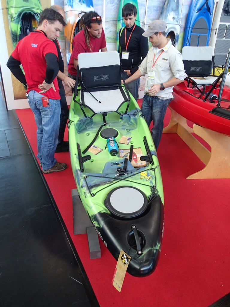Další velkou novinkou je, že Pyranha vyvíjí nové vlastní Sit-On-Top kajaky a již nebude zastupovat značku FeelFree. Nyní představila kajak Fusion Sit-On-Top a jeden z mořských kajaků v Sit-On-Top provedení. Rekreační kajaky budou připraveny do jara, tak se nechme překvapit. EXONaprosto převratnou novinkou veletrhu byl zbrusu nový creekový kajak od Exa jménem Six. V šestkové vodě je jako doma, což prokázal tento víkend na Addidas Sickline, kde italský jezdec na kajaku Exo Six obsadil krásné druhé místo. Velký objem, vyvážená příď i záď, rychlé dno, nové sezení.![]() Kajak do té nejtěžší vody. Chce to umět už trochu jezdit, ale v extremu Vás podrží. Pro méně divoké řeky zůstává u Exa řada XT. Všechny lodě Exo lze objednat v mnoha krásných barevných variacích. Kajak EXO Six bude k vyzkoušení již tento víkend v Testcentru VODÁK sport na Vavřinci! ![]() Jackson KayakJackson Kayak pojal tento veletrh především jako představení mnoha typů rybářských kajaků. Z úplných novinek byl představen menší levnější rybářský Sit-On-Top kajak Cruise 10 a velký kajak BigRig uzpůsobený i pro použití motoru.![]() ![]() Z kajaků na divokou vodu tu byl k vidění nový Rock Star 2014 – zase vyladěnější rodeovka a dvě velikosti kajaků na divokou vodu Karma. Pro české zákazníky i prodejce přichází z Jackson Kayaku velmi dobrá zpráva. Po několika letech nejasností, kdo se o trh v které zemi bude starat, bylo konečně jasně řečeno, že budou země rozděleny mezi jednotlivé distributory. V Evropě bude pro příští tři roky pět distributorů, kteří budou mít mezi sebe rozdělena teritoria a nebudou zasahovat do jiných. Přesné rozdělení zastoupení bude jasné cca do měsíce. Teď je ale už jisté, že pro Českou republiku bude mít výhradní zastoupení firma VODÁK sport. YAKÚžasnou kolekcí lákala pozornost všech i firma YAK. Bohužel krásné vesty i bundy budou k prodeji až koncem sezóny 2014, tedy spíš na sezónu 2015. Opravdu propracované prototypy se nesměly fotit, tak přinášíme alespoň obrázek rozkreslených inovací a novinek. Ze současných výrobků nás zaujala šprycka Flow na seakajak s kapsičkou na komínu, nový jednoduchý nožík na přeřezávání lana, nové neo ponožky. Fajn je i současná řada bund i suchý oblek, nebo elastická vodácká termotrika s jemným fleecem. Na seakayk ale i na jiné delší pádlování uvítáte novou kapsu na Camellback možnou upevnit na záda libovolné vodácké vesty. Pejskaře potěší nová propracovaná vesta pro psy. Dobrou zprávou je i to, že se opět do sortimentu vrátila velmi oblíbená špricka YAK Steel.![]() České zastoupení bylo na veletrhu opět velmi významnéGumotexGumotex zaujal především novou zelenou barvou rekreačních lodí a oranžovou barvou lodí na divokou vodu.![]() Zelené bylo i oblečení personálu a tak byl Gumotex nepřehlédnutelný. Z novinek tu byl představen nový kajak na moře a jezera Seawave, který jsme měli k testování již v létě na WWP.